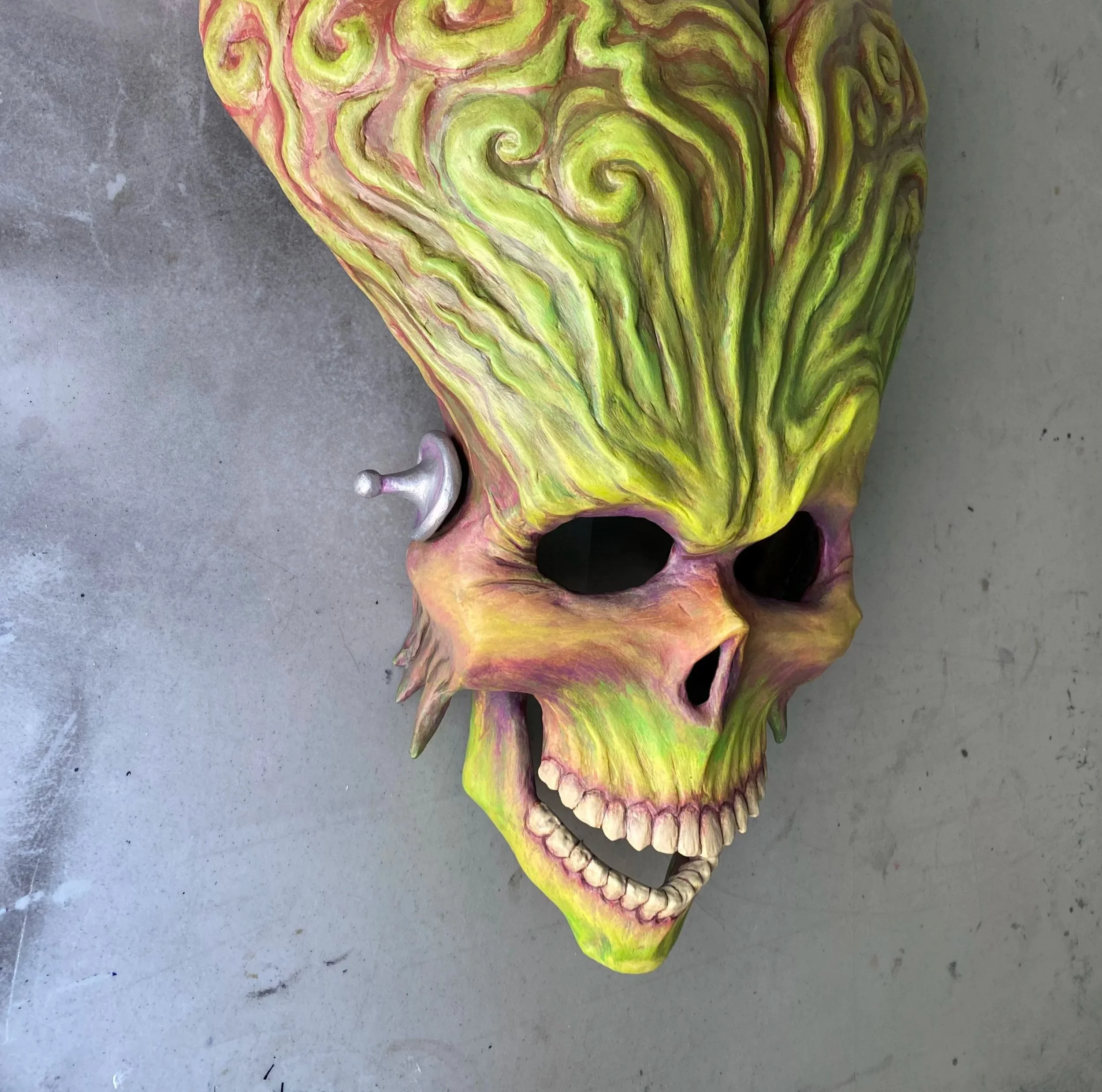 Papier Mache Sculpture Creep Krampus Equine Martian Green Ghost Devil in the Guise of a Peasant Monster Wearing A Ghost Mask Haunted Tree Ghost The Masque of the Red Death Grønulna Lysienga Borgundia